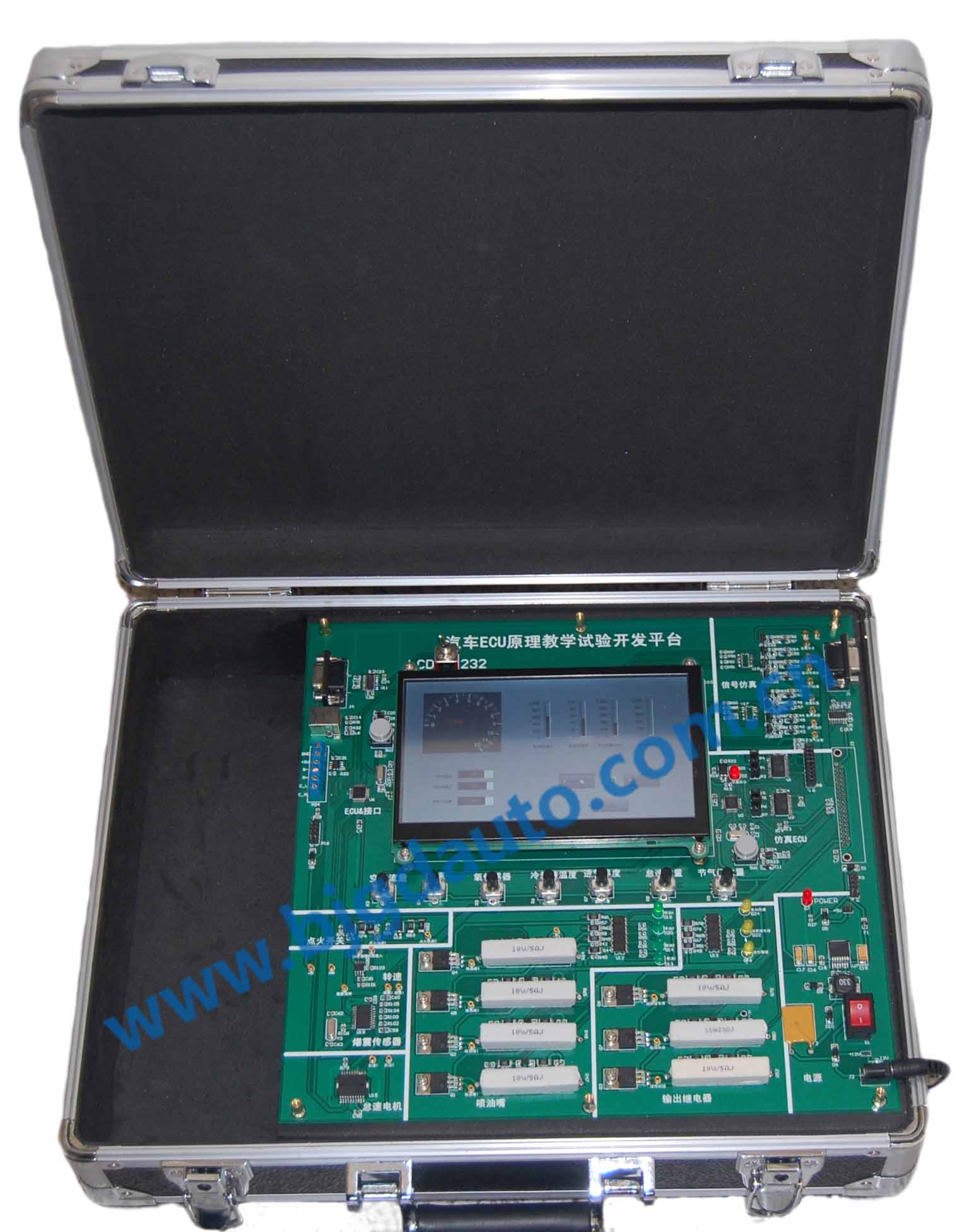發(fā)動(dòng)機(jī)電控裝置綜合實(shí)驗(yàn)系統(tǒng)能夠仿真發(fā)動(dòng)機(jī)運(yùn)行工況,實(shí)現(xiàn)ECU主要參數(shù)的動(dòng)態(tài)顯示, 直觀體現(xiàn)ECU結(jié)構(gòu)組成和工作原理;并且能與發(fā)動(dòng)機(jī)連接實(shí)現(xiàn)工況檢測(cè)、修改運(yùn)行參數(shù)和控制變量,對(duì)ECU參數(shù)進(jìn)行標(biāo)定和優(yōu)化,完成二次開發(fā)功能。