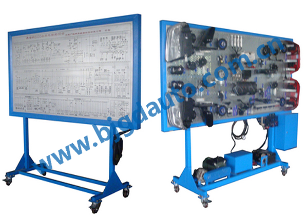 設(shè)備采用原車電器電控系統(tǒng)器件組成,包括:發(fā)動(dòng)機(jī)電控系統(tǒng)、電源系統(tǒng)、起動(dòng)系統(tǒng)、照明系統(tǒng)、儀表系統(tǒng)、信號(hào)系統(tǒng)、音響系統(tǒng)、玻璃清潔系統(tǒng)、中控門鎖、玻璃升降器、電動(dòng)后視鏡、汽車?yán)群托铍姵氐取M饧酉到y(tǒng)主要包括: 故障設(shè)置系統(tǒng)、故障顯示裝置、驅(qū)動(dòng)電機(jī)、電源總開關(guān)、檢測(cè)端子以及安全防護(hù)裝置等。本臺(tái)架可以完整展示汽車電器電控系統(tǒng)的組成、結(jié)構(gòu)和工作原理,可以進(jìn)行電器電控系統(tǒng)常見故障的模擬、診斷和檢測(cè)實(shí)操訓(xùn)練,提高學(xué)生分析和解決實(shí)際問題的能力,適合中高等汽車院校與培訓(xùn)機(jī)構(gòu)對(duì)學(xué)員進(jìn)行汽車電器電控系統(tǒng)的教學(xué)需要。