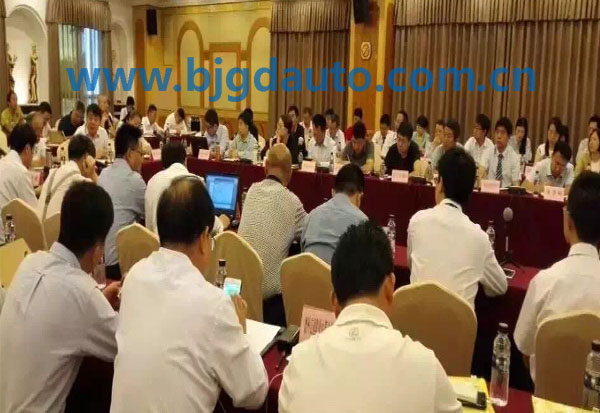 會議中,大賽總裁判長王凱明老師重點對2015年賽事總體情況、賽事調研報告中反映的問題以及今后賽項調整和設想進行了通報。并邀請定期維護、車輪定位、故障診斷、發動機拆裝、車身涂裝、汽車空調、車身修復等項目裁判長就賽項的成績進行分析、比賽中發現的問題和不足、以及今后的建議進行了總結。