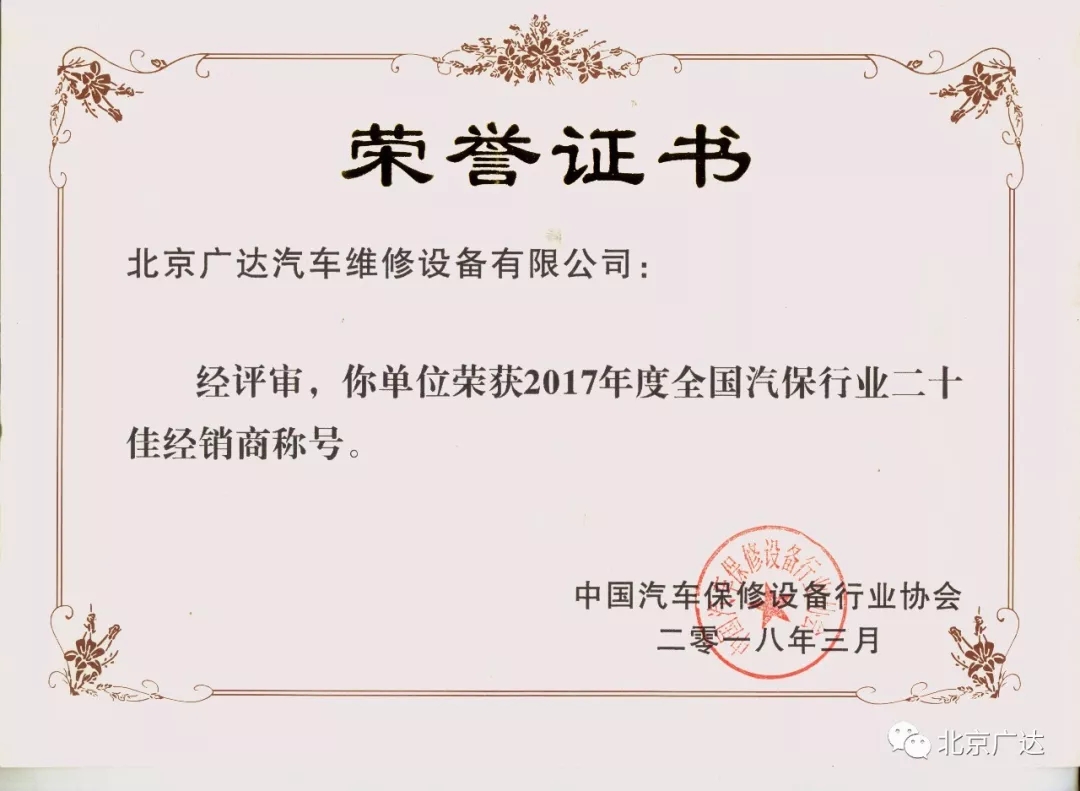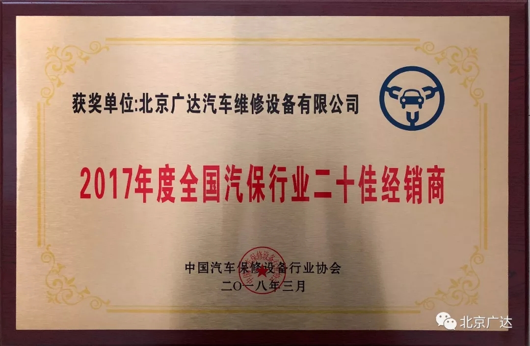 北京廣達蟬聯“2017年度全國汽保行業二十佳經銷